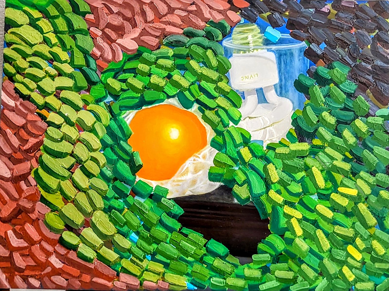 Painting of interaction between elements and objects like tomato, bulb