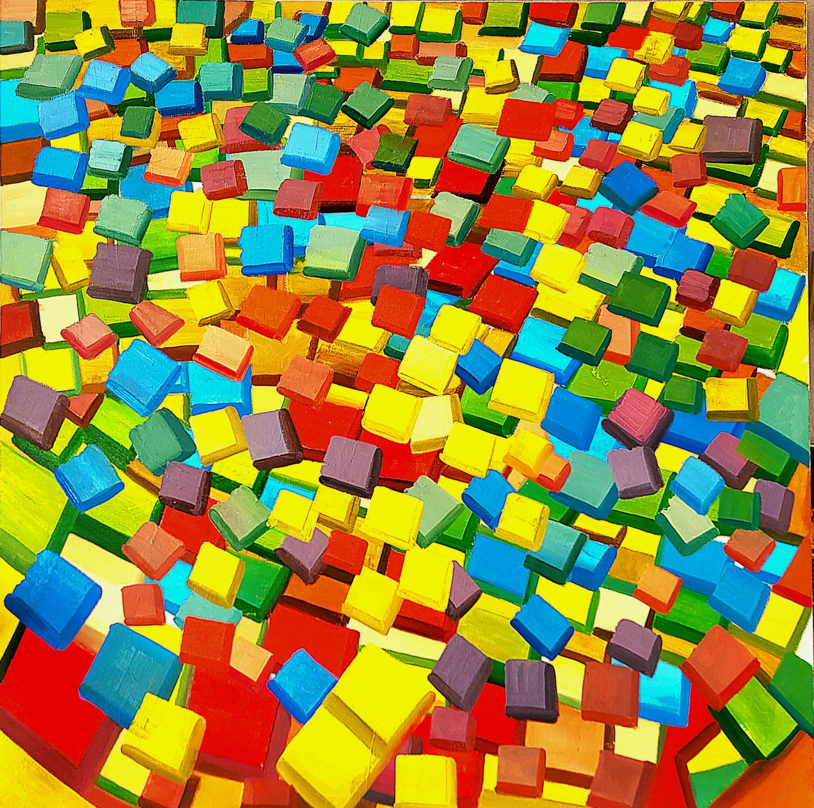 Crafted with precision, this painting transforms basic geometries—squares—into a cohesive representation of modern abstract art. The diverse range of colors used across various positions introduces a dynamic energy to the composition, ensuring it commands attention in any setting. Its clean lines and structured design make it ideal for contemporary spaces, whether you’re adorning a minimalist home or elevating a corporate environment.